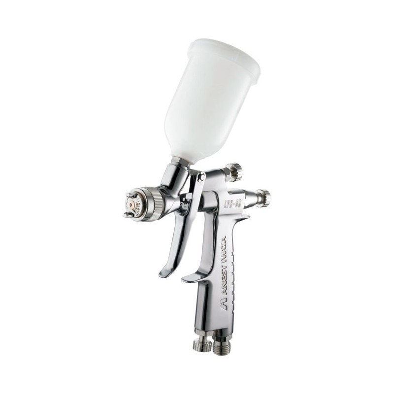131807XXX – Pistolet de retouche gravité IWATA type LPH-80 avec 2 godets (70 cc + 250 cc) – Taille de buse au choix de 0.4 à 1.2 mm