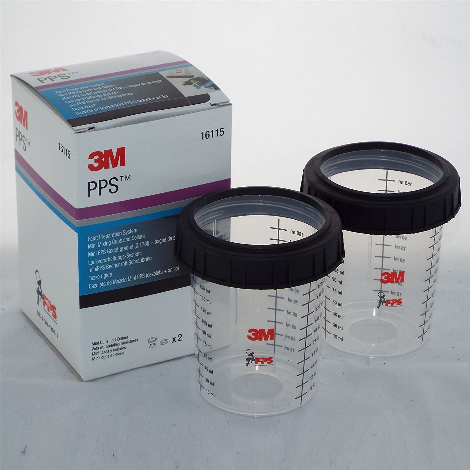 16115 – Lot 2 godets réutilisables 3M PPS 170 ml + bagues de serrage
