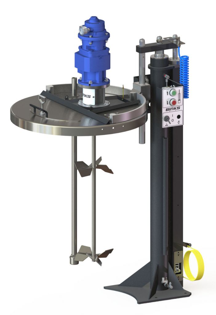 DE-10FL01AC – Ensemble élévateur pneumatique BINKS Premium + couvercle + agitateur électrique pour fût 205 litres composé de :